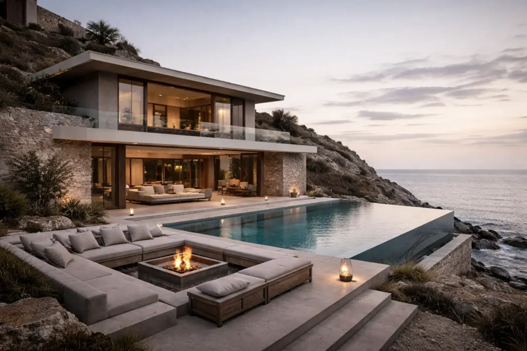 | 03. Materiality | Organic Origin | Stone, wood, and lime-wash for a tactile, grounded experience. |